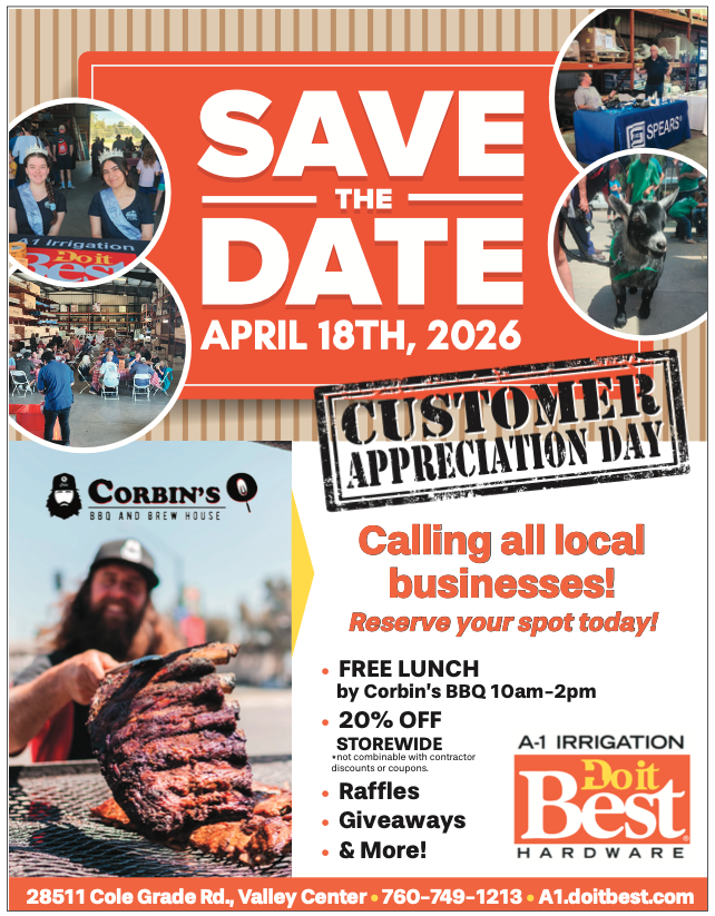 Celebrating America’s 250th birthday with a parade full of Red-White-Blue Saturday, May 23rd along Valley Center Road.