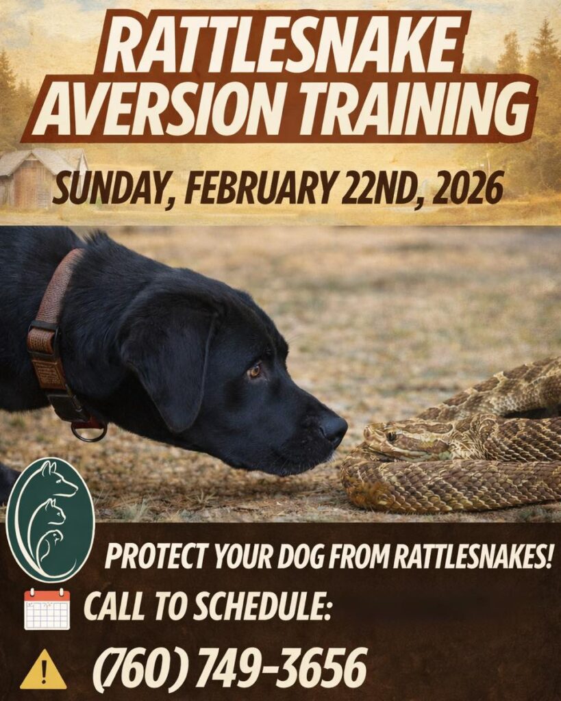 Join us for Rattlesnake Aversion Training on Sunday, February 22nd, 2026 and help protect your pup from dangerous encounters on the trail or at home. This training could save your dog’s life.